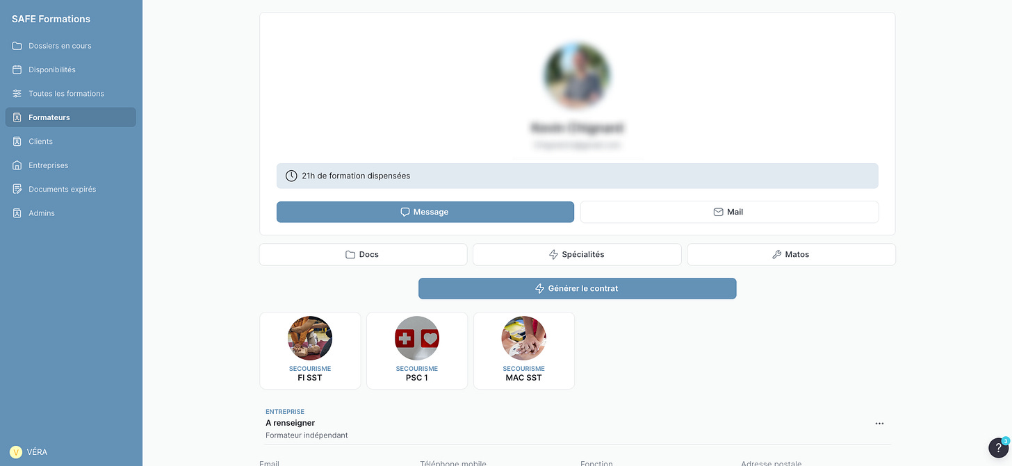 Enfin, la coordination des formateurs a été considérablement simplifiée grùce à l'assignation automatique basée sur des critÚres de matching. Cela a permis à SAFE Formations de gagner en réactivité, d'optimiser l'utilisation de ses ressources et d'assurer que chaque formation soit gérée de maniÚre efficace et professionnelle.